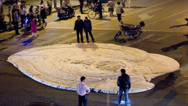 Una extraña sustancia apareció del subsuelo del distrito de Pukou, en Nanjing, China, sin que nadie pueda explicar su procedencia.