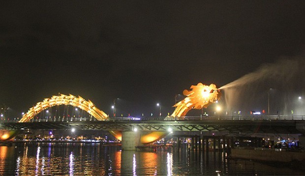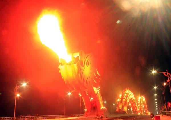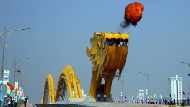 Vietnam.- En este país asiático las autoridades inauguraron un puente cuya estructura de acero tiene forma de dragón y de hecho lanza fuego de su hocico.
