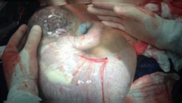 La imagen ha dado la vuelta al mundo. El bebé luce aún dentro del saco amniótico, luego de que fuera retirado por la vía de la cesárea del vientre materno.