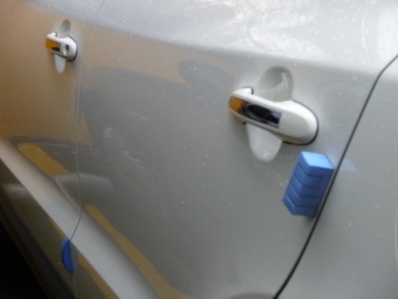 Bueno, pues ingenioso como es el pueblo coreano, encontraron una solución rápida a esta dificultad. Se ha vuelto "tendencia" que los dueños de todo tipo de autos conserven las esponjitas azules que las concesionarias utilizan para proteger los carros en su traslado desde la fabrica hasta su exposición.