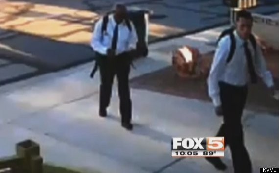 En un video de vigilancia difundido este martes, se puede observar a dos hombres vestidos con el atuendo habitual de los jóvenes misioneros mormones, con camisa blanca, corbata y pantalón negro, así como cargando mochilas, en las que llevarían sus "instrumentos de fe". Pero en realidad esas mochilas les servirían para transportar su botín.