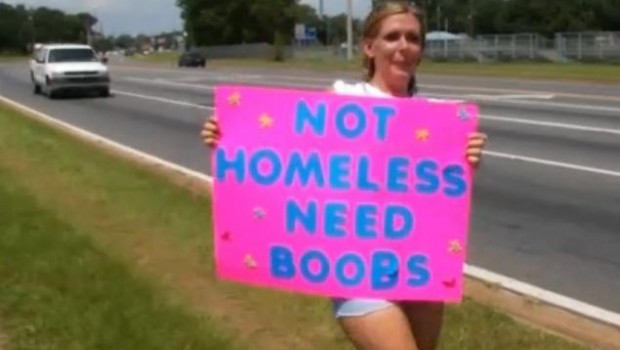 Estados Unidos.- Christina Andrews, una mujer de Florida, pasa sus días mendigando entre los automovilistas para que le den dinero y pueda hacer su sueño realidad, tener uno pechos enormes.