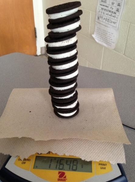 El profesor Anderson propuso una actividad práctica, en la que se debía comprobar si el contenido de las"Double Stuf Oreos", era en realidad doble. Los alumnos se enteraron de una terrible verdad: las galletas que prometen doble relleno de crema sólo son 1.86 veces más grandes que las Oreo regulares.