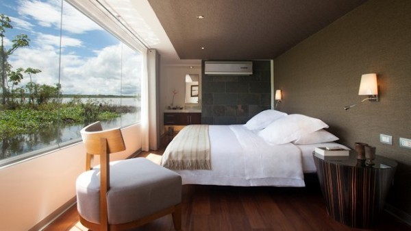 El barco de 130 pies fue re-diseñado por Jordi Puig, quien ha renovado absolutamente todos los detalles, incluyendo las 12 suites y las zonas comunes. El barco ofrece a los turistas una experiencia única al recorrer las aguas del Amazonas, seguramente no podrás darte un chapuzón en el río ¡a quién le importa!
