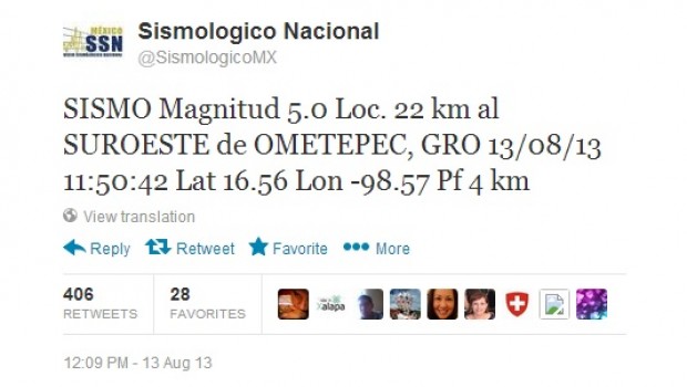 El Servicio Sismológico Nacional (SSN) reportó que el temblor fue 5.4 grados en escala de Richter a las 11:50, dato preliminar, con epicentro en Ometepec, Guerrero. Minutos más tarde, el SSN ajustó la intensidad a 5.4.