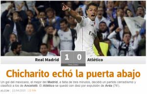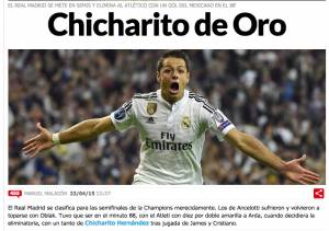 El Real Madrid se ha clasificado para las semifinales de la Champions League de nuevo, tras imponerse por un ajustadísimo 1-0 que no llegó hasta los minutos finales gracias a un gol del mejor del encuentro: Chicharito. El mexicano aprovechó la oportunidad, y de qué manera: su tanto fue definitivo para la victoria blanca, en un partido sin demasiado fútbol y que se decidió, como estaba previsto. La prensa mundial se rinde a CH14, estas son las mejores portadas.